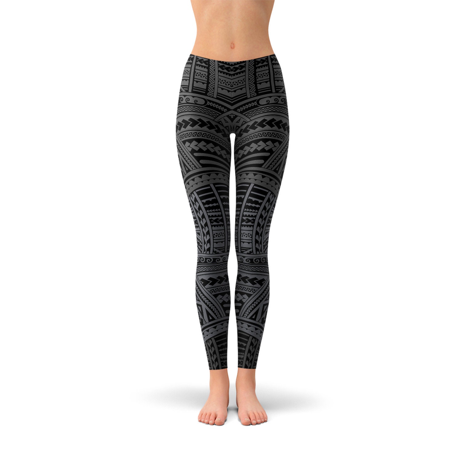 Gunmetal Gray Maori Tattoo Leggings For Women Printed Tribal Etsy Uk